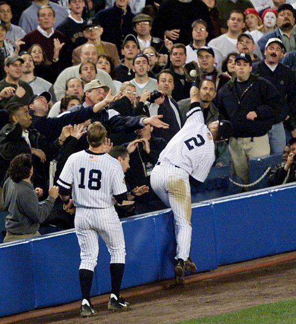 Of course this play was going to be in my highlights, how could you not love this play? Even though many Jeter haters will say he didn’t have to fall into the stands and despite being discussed as a poor defender, Jeter has had many iconic plays over the course of his career. It was in these big moments that he truly succeeded and where many of those heroic moments were born. This play is no different, coming in the 2001 ALDS against the Oakland Athletics just two days after making his iconic “the flip” play in Oakland. Man I could stare at that picture all day, goosebumps.